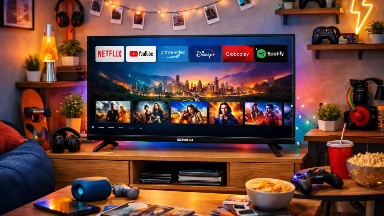 Viajar pede autonomia — e, na prática, isso significa ter entretenimento confiável mesmo quando a tomada não está perfeita, o Wi-Fi oscila ou você quer algo simples de ligar e usar. Nesta lista, reunimos opções para quem quer levar uma TV para casa de praia, sítio, quarto extra ou motorhome, além de itens úteis para manter o controle da experiência no dia a dia. O foco é facilidade de transporte, conectividade e recursos que ajudam a manter tudo funcionando sem estresse. A TV aiwa 50 smart aparece como destaque de tela grande com visual moderno.