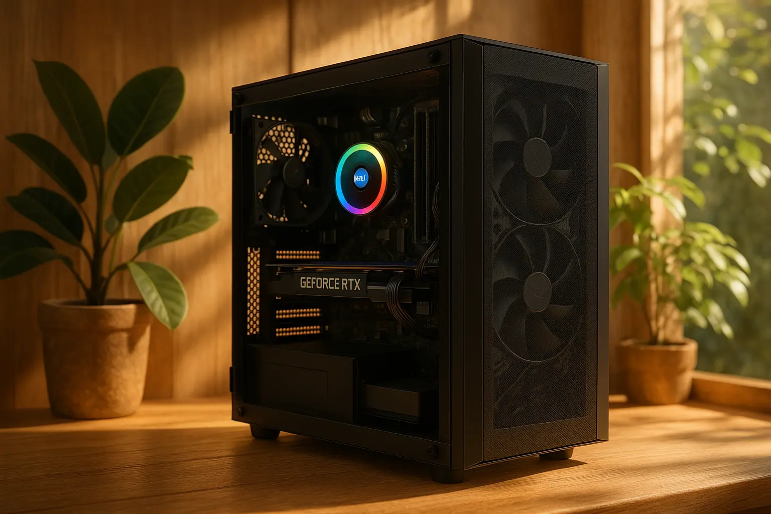 Acima de tudo, a RTX 3060 é o grande destaque desta configuração. Com 12GB de VRAM GDDR6 e arquitetura Ampere, ela roda praticamente qualquer jogo atual em Full HD com gráficos no alto ou ultra. Além disso, é compatível com Ray Tracing e DLSS, garantindo gráficos realistas e melhor desempenho em jogos como Cyberpunk 2077, Warzone e Hogwarts Legacy.