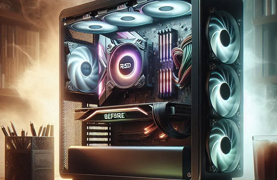 Finalmente, o gabinete escolhido é um Gabinete Gamer RGB, com design moderno e ventilação adequada para manter seu sistema resfriado. Com um visual chamativo, ele também oferece espaço suficiente para futuros upgrades, como mais discos de armazenamento ou até mesmo um water cooler.